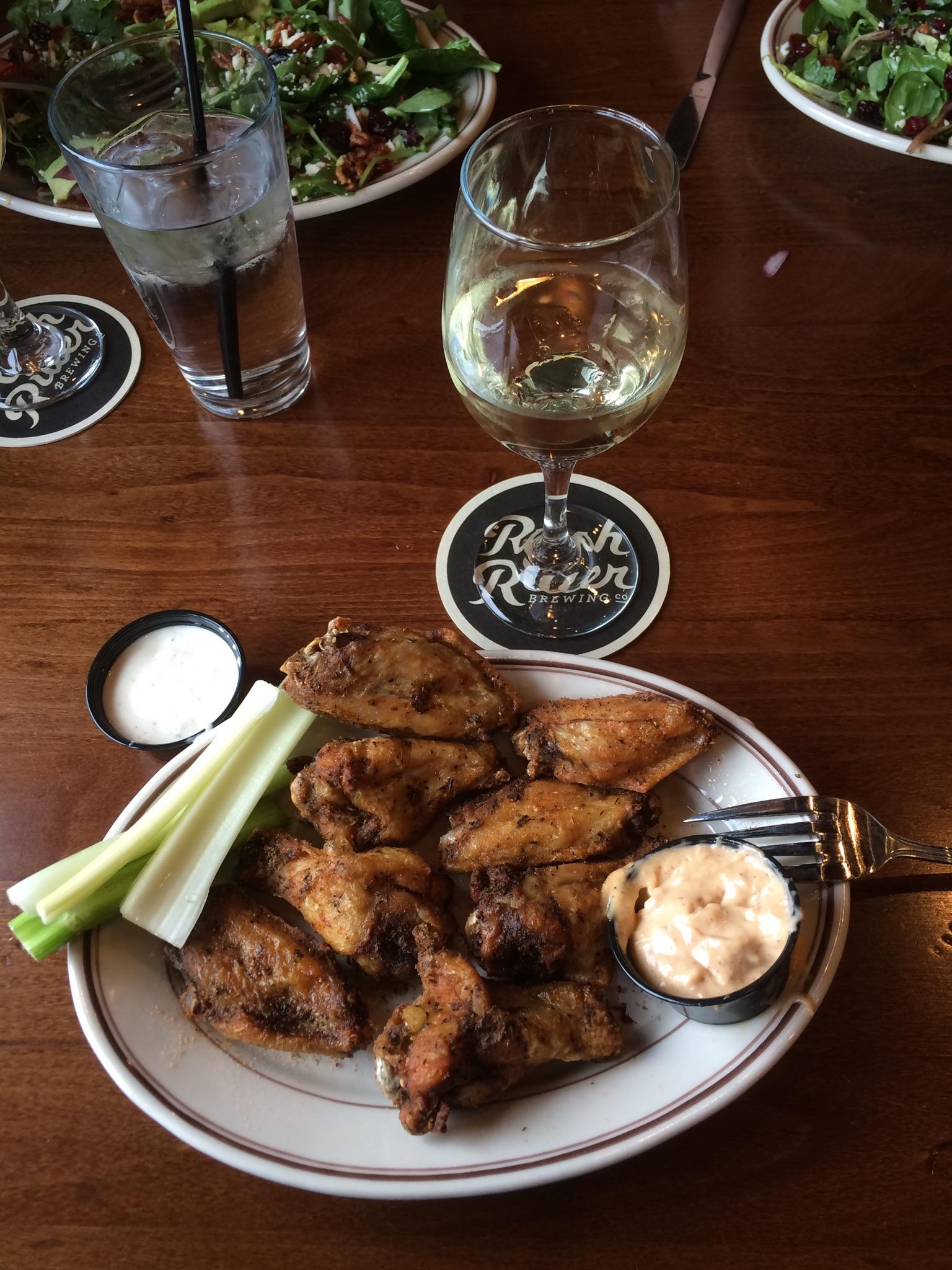 Visit #4- we went here for lunch last Friday to meet our daughter. She and I ordered our favorite salad again and it was just as delicious as the first time. My husband ordered the wings. He thought they were awesome and said that he would definitely order them again. His only complaint was that he only got 8 wings (which are on the smaller side-but he said they were meaty) for $11. The wings have a tasty dry rub on them and they are served with a house made bistro sauce which is slightly spicy but very good. They offer other sauces to that satisfy most everyone’s taste. If you like wings, you’ll love these!
