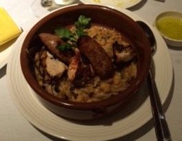 My husband is a meat LOVER and he ordered the cassoulet. I guessed that word meant an Italian casserole. I Googled it and that was correct. He absoutely loved it and would order it again. He thought it was expensive for the serving size but he did have leftover’s and, hey, it was the Valentine’s eve pricing:). The cassoulet was presented in a ceramic pot and had white beans topped with vegetables, braised duck, grilled chicken, and Italian sausage.