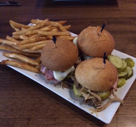 Scott ordered the Cuban sliders. He is a Cuban connoisseur and he said these are one of the best Cubans in town;). Just the right amount of ingredients of pulled pork, smoked ham, mustard and pickles. The coleslaw here is good but has a kick to it with their wasabi and cucumber sauce. The fries are pretty good too. Enjoy!
